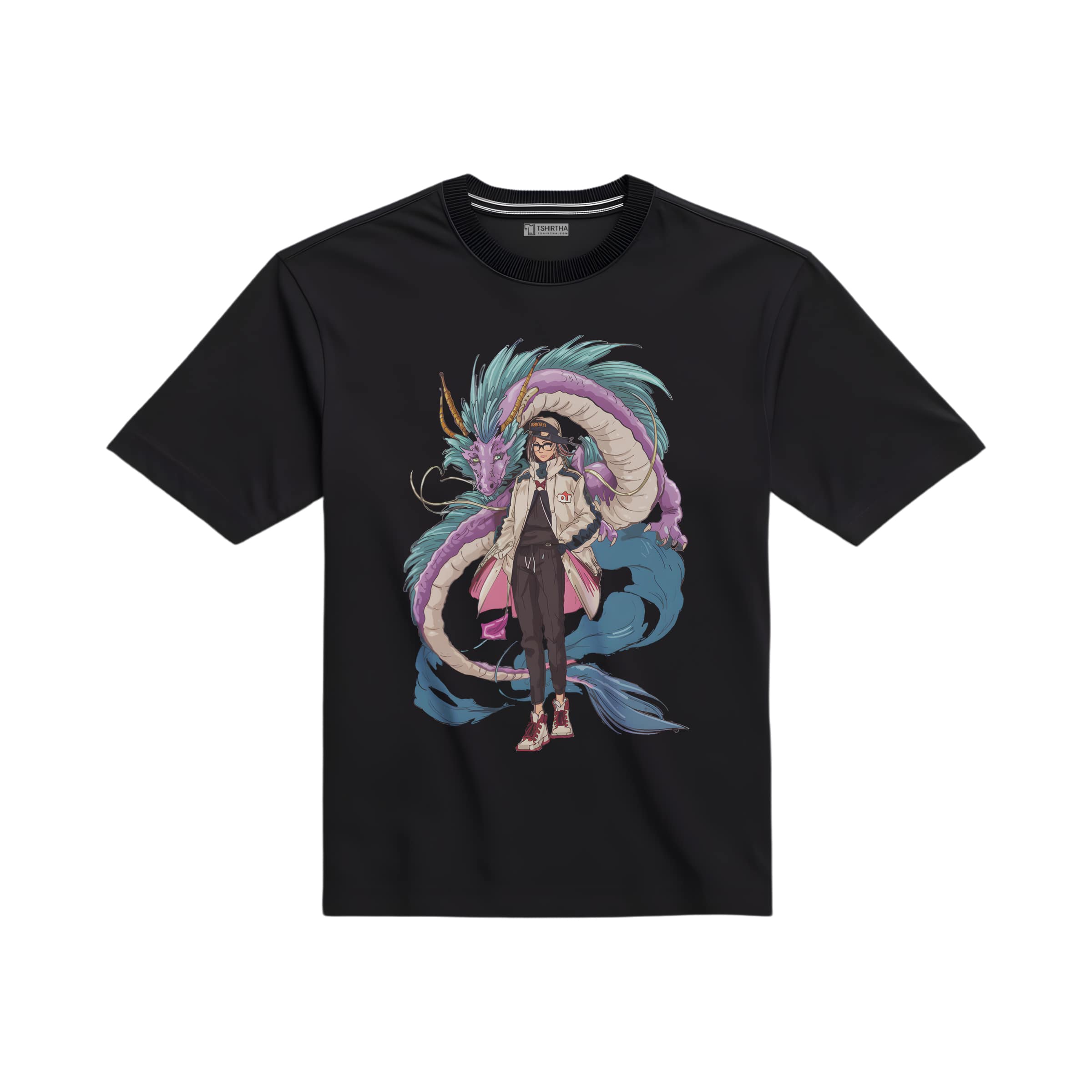 تیشرت با طرح اژدها و دختر