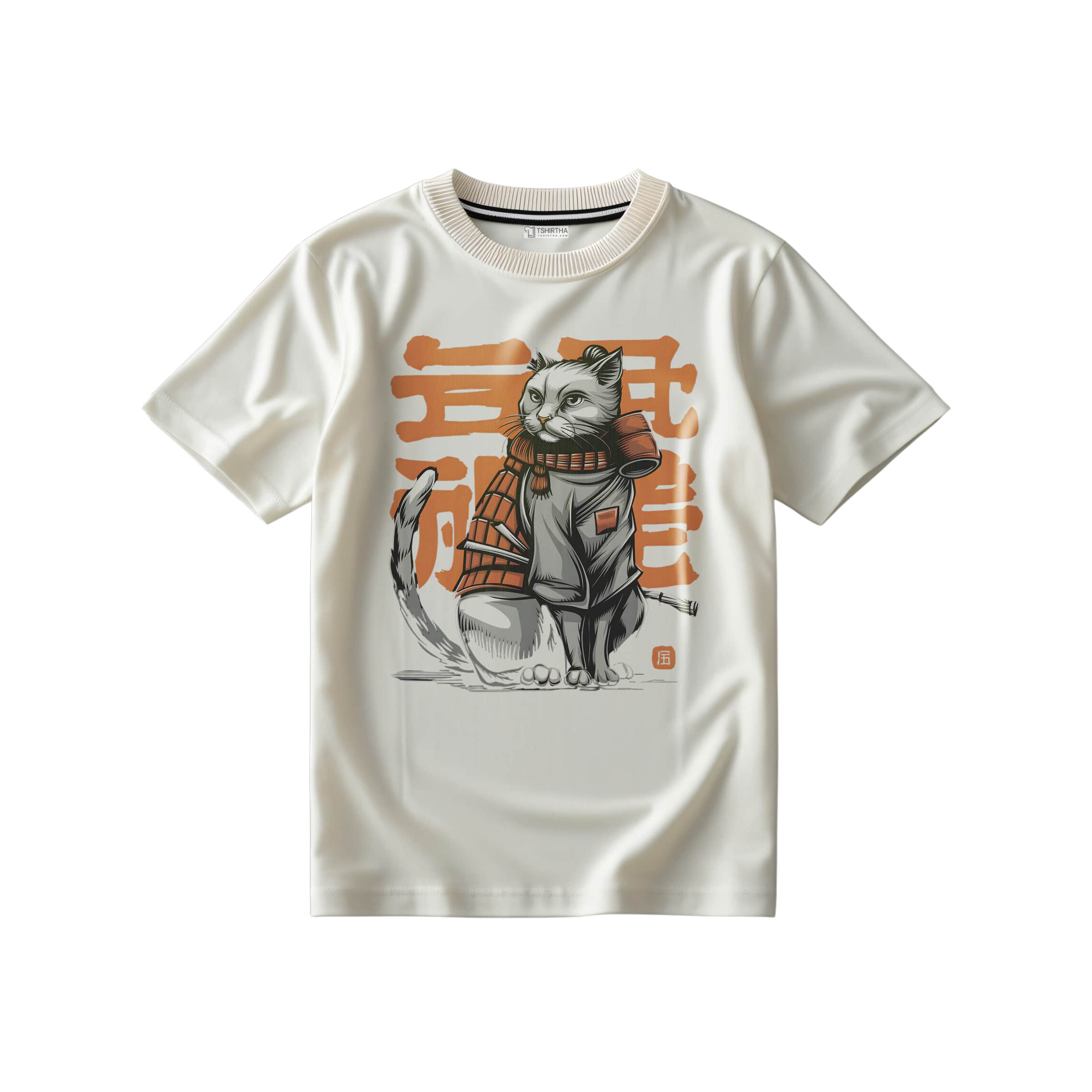 تیشرت سفید شیری با طرح گربه ژاپنی